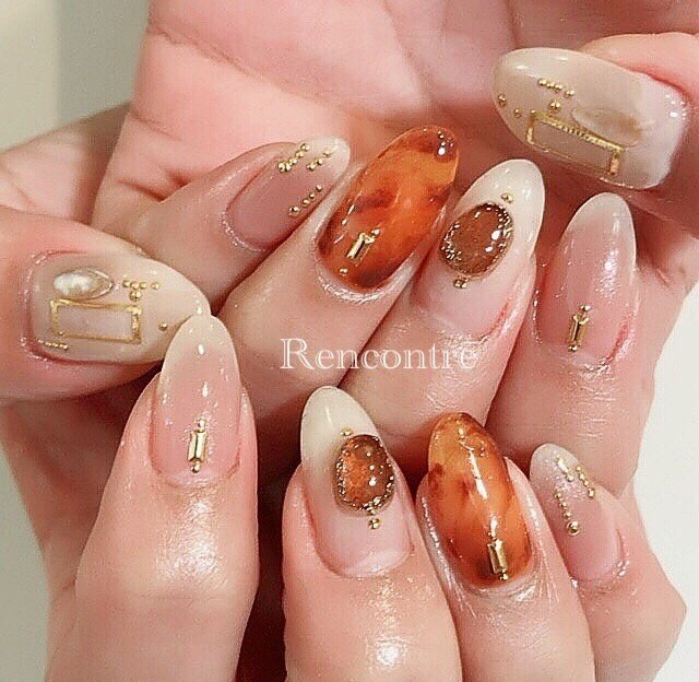 どの色と組み合わせる オトナ女子にオススメのべっ甲ネイルデザイン Itnail